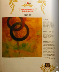 抽象絵画というと、人生を突き詰めて深刻にモチーフとして表現するあまり、拝見していると段々と冷めていってしまうものがある。この石川静さんの作品は温かく、ナイーブな心の世界へと誘ってくれて嬉しい。ふたつのリンクが交叉して噛み合い愛し合っているようで色遣いと共にまことに劇的だ。